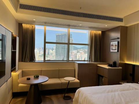 酒店位置很好 就在车公庙站旁边 楼下有24小时便利商店 前台办理入住手续速度很快 而且有问必答 走道有自助柜 扫码开门取就可以了 外卖也能送到房门口 唯二缺点是电梯只有两台空间很小 还有淋浴间去水凹槽较浅 容易流到外面去 厕所也比较小间 没挂衣物的钩