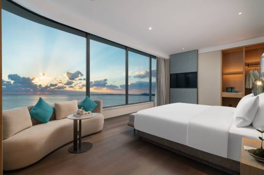 临时出差和同事定的这个房间,全屋智能,卫生间和马桶很干净,风景真不错,靠着海边,前台也不错,很值得说的一个点,房间里面所有带有棱角的地方都做了包裹防磕碰,真的是很细心的一个酒店