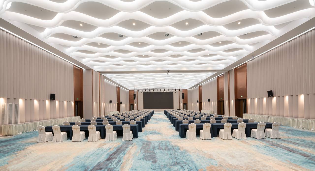 酒店位于荣成市东部核心区,海湾北路518号,东临齐鲁最美海岸线“荣成滨海公园”,西靠樱花湖,周围美丽的自然风光环绕,地理位置优越,交通便捷。酒店占地5万㎡,建筑风格结合海洋自然元素,灵感源于海浪、岩石与植被的光影变化,展现了建筑与海洋的完美融合,是一座集政商宴会、滨海休闲和亲子度假为一体的综合型度假酒店。酒店拥有高星级客房,推窗即可欣赏一线海景。此外,酒店设有柏拉图酒吧,提供各式饮品、酒水。会议设施完善,主楼设有1000㎡的大型宴会厅、600㎡的中型宴会厅和300㎡的小型宴会厅,另有5个多功能会议室,能够满足各类会议和宴会的需求。餐饮业态丰富,设有中餐包厢、PARTY房、日料餐厅、自助餐厅、海鲜主题餐厅。户外区域设有宽阔草坪、户外泳池和黄金沙滩。酒店内部配备儿童乐园、健身房、棋牌室、高尔夫练习场和雪茄吧等娱乐设施。