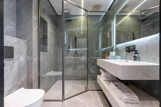 房间设施超赞,智能设备方便又实用,语音控制灯光、窗帘等,真的很便捷。浴室空间大,洗浴用品也很齐全。健身房和洗衣房也很方便,对于经常出差的人来说太友好了。