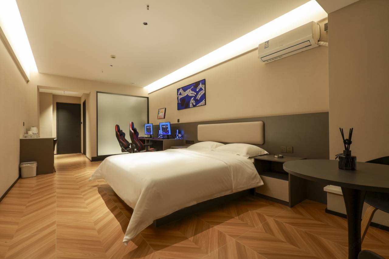 用心生长,追光而行。邀您共享惬意时光。在这里,不要起的太早。 酒店设备: 精品大床(影音/电竞) 精品双床(电竞) 精品(家庭)影音套房,精品麻将榻榻米套房 商务行政家庭影院等、多种房型,房内配有4k高清极米投影仪,内置哈曼卡顿环绕立体声音响,独立大功率快速制冷热空调,程控千兆光纤网络终端,零压床垫,房间配备智能马桶。
