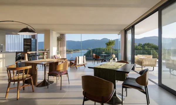 入住了网红房型“汀未央”,270度全景落地窗将仙岛湖的湖光山色尽收眼底!清晨看湖面晨雾缭绕,傍晚赏粉色晚霞,简直是一幅流动的山水画。房间设计极简又有格调,水泥灰与原木色搭配,榻榻米茶区闲适惬意,拍照无需滤镜直接出片。