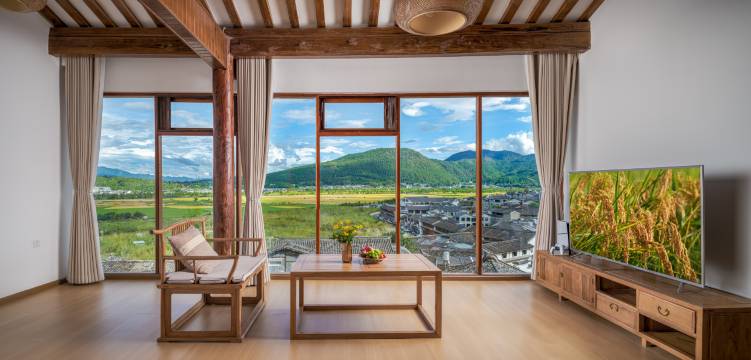 客栈小巧精致,我们预定的两套最大的房间,一楼的有庭院私汤,二楼的景观无敌。每天拉开窗帘满眼是刚收割过的稻田和蓝蓝的天,心情特别愉悦,景观跟网红景点椿野咖啡无差。房间的细节看得出老板的用心,全屋都可以语音控制,我们住的房间很大,配置了柜式空调,为了防止柜机直吹,在空调和床之间贴心的放置了可以推拉的屏风。老板夫妇态度犹如家人,很亲切随和,他们的工作人员也每天都是笑眯眯的。院子里的松鼠们每天的蹦跶也是活力满满!感谢花溪客栈给了我们无比圆满的腾冲之行!