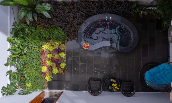 每天在院子里泡温泉,度假舒适感拉满。