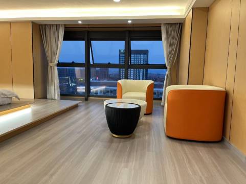 房间很干净,很新,风景也很好。晚上边看风景边泡茶非常惬意。离万达很近吃饭也方便。老板服务热情,知道我们泡茶还多送了水。