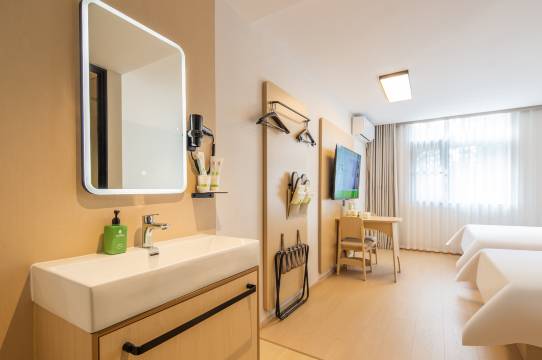房间很干净,给人一种很温馨的感觉,每天都会换一次性的便携洗脸巾 ,浴巾,拖鞋。前台小姐姐很友好,很热情。工作人员很友好,教我使用自助洗衣。酒店里还有机器人服务,很方便。很满意的一次住宿,下次来还会选择这家海友酒店。