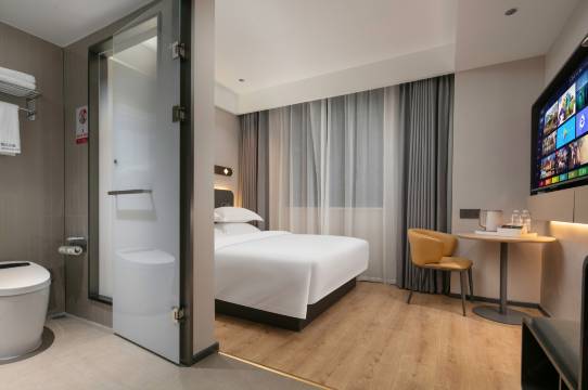 房间打扫得干干净净,采光和视野都很好,设施齐全,全智能设备只需动动嘴就可以,非常方便,前台工作人员态度很好,周边交通也方便,无论是出差还是旅行都很合适,强烈推荐