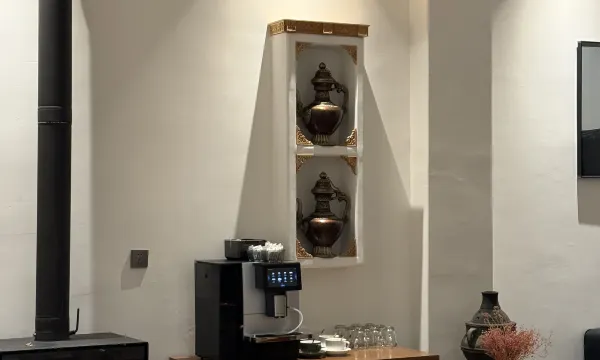 环境:昨天晚上我们因为下雪的缘故到的比较晚,一开始没有找到民宿位置,老板非常贴心的在路上接我们,还提前把大厅的壁炉烧上了,真正的壁炉啊!烧柴的那种,外面冷冰冰,一进民宿暖洋洋的别提多带劲了