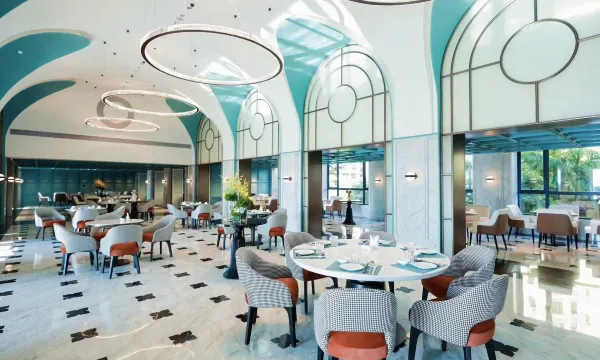 欧式庄园风五星酒店,步行3分钟达私享沙滩,海景房视野极佳。客房配戴森吹风机、欧舒丹洗护,免费迷你吧加分;无边泳池、儿童乐园齐全。早餐中西兼备,服务热情高效,适合情侣度假与亲子出行,离博鳌论坛会址不远,出行便利。