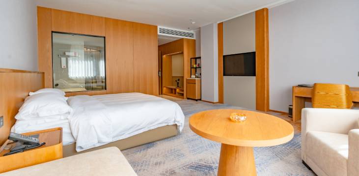 房间很大,住着很舒服。前台接待服务很好很热情。停车位也很好。很满意,推荐。唯一建议:小朋友觉得房间智能化不够。