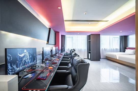 酒店坐落于新兴二路104号梧州市中心,毗邻梧州梦之岛时代广场,梧州市政府,梧州市文化中心,酒店周边生活配套齐全,宜居宜商,kk电竞酒店更是将电子竞技元素深度融入传统酒店住宿之中,为玩家打造了一个集休息、娱乐、竞技于一体的专属空间。在这里,每一间客房都不仅仅是休憩之所,更是装备齐全、网速飞快的电竞战场。从游戏电脑到专业电竞椅,从环绕立体声耳机到超大屏幕显示器,每一处细节都彰显着对电竞文化的尊重与致敬。 专业级电竞配置:电竞酒店精选优质硬件配置,玩家在享受游戏时流畅无阻,无论是激战《英雄联盟》的峡谷,还是探索《绝地求生》的未知战场,都能获得好的竞技体验。 个性化主题房间:从科幻未来风到复古街机室,电竞酒店提供多样化的房间主题,满足不同玩家的审美偏好。每一间房都像是精心设计的游戏场景,让人一踏入便沉浸其中。 高速网络:稳定的网络连接是电竞体验的关键。电竞酒店采用高速光纤网络,确保低延迟、无卡顿,让玩家在关键时刻绝不掉链子。 除了电竞娱乐体验,电竞酒店同样注重住宿的舒适性与便利性。房间内配备舒适的床品、便捷的自助洗衣房、24小时客服服务等,确保玩家在紧张刺激的电竞之余,也能享受到家一般的温馨与便捷。此外,酒店还提供周边餐饮推荐等增值服务,让玩家的整个行程更加无忧。
