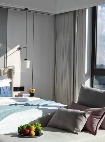 位置超优越!地处观山湖区核心,距贵阳北站5分钟车程、金融城8分钟,出行商务或旅游都便捷。酒店满是艺术氛围,民族风融合现代设计,大堂绿植环绕、暖光柔和,拍照出片率超高。房间宽敞整洁,智能灯光、窗帘系统加持,乳胶床垫柔软亲肤,隔音遮光俱佳,一夜好眠。