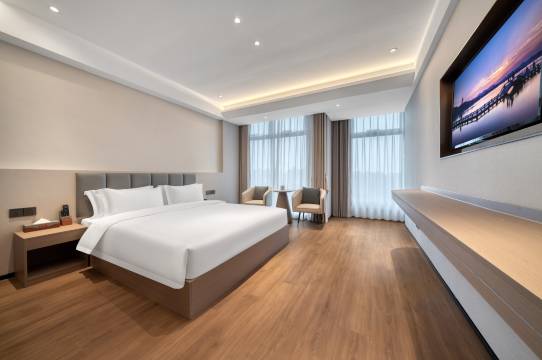 房间很大,干净整洁,落地窗饰也很好,隔音也不错,楼下都是小吃,外卖也可以送上楼,性价比不错的酒店推荐