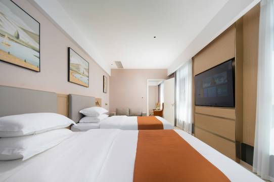 房间宽敞,淋雨间很大,前台张爱玲小姐姐服务很好,看到拖家带口多荣送了3份早餐,建议,早餐一般,及不知道是客房还是餐饮人员进出电梯自说自笑,不符合酒店影响