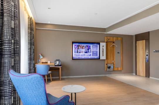 房间空间足够大,电视可以手机投屏,前台的工作人员都很亲切热情,早餐的话汤粉和橙子好吃。