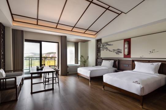 带了两个小孩,一家出行很舒服,房间很大,设备也都很新,工作人员都很友善,服务质量高。酒店的餐厅味道不错,一鱼三吃很好吃。就是除了餐厅附近吃饭的地方偏少,一定要开车出行才方便。总体体验很好,以后还会选择泊心云舍系列的酒店。