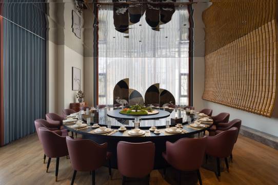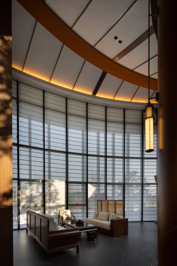 民宿坐落于新余市仙女湖国家旅游度假区,相思河如飘带一般围成了五万多平方米的半岛,设计灵感取自仙女湖的古老传说,再现仙女湖的神话魅力。建筑设计以“七夕”二字为魂,二十七栋庭院围合成“七”字,圆形围屋延伸出的艺术连廊勾勒出了“夕”字的灵动,既是“七夕”文字之再现,又似仙女的飘带遗落人间,故名七夕岛。大堂采用赣南围屋建筑风格;二十七栋带前庭后院的中式美学汤池别院各具浪漫风格;一座书香弥漫的泊心书院;一座中西融合的七夕浪漫主题“泊心肴”餐厅;融合中式现代水系园林,山水自然,一步一景,以隐逸于仙女湖山水的园林浪漫秘境;穿过横跨在相思河上的同心桥,便是七夕浪漫主题营地;无不演绎了鹊桥相会的“七夕浪漫”故事,打造了一个“心灵故里”的浪漫栖息圣地,成为中国“七夕浪漫”为主题的宿集。
