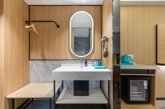 商务出差,酒店很好,房间很大,房间设施很新,有机器人送餐,停车方便,前台小姐姐很好,免费给我延长了退房时间。