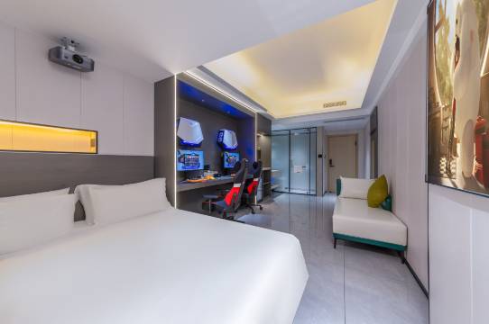 一流电竞配置,沉浸式游戏体验专为电竞爱好者打造,配备高性能电脑、专业电竞椅、超清大屏显示器,搭载超清显卡与流畅处理器,确保游戏运行无卡顿,带来媲美职业赛场的竞技体验!无论是《黑神话:悟空》等3A大作,还是团队开黑的MOBA类游戏,都能轻松驾驭。房间采用全屋智能控制系统,搭配人体工学电竞桌椅,助你以绝好状态征战虚拟战场。黄金地理位置,出行便捷无忧酒店坐落于海口琼山区大园路75号(近海口东高铁站),毗邻海南省大交通枢纽之一的海口高铁东站,步行15分钟左右即可抵达,方便省内外的电竞玩家快速集合。周边更有吾悦广场、高兴里等商业综合体,集购物、餐饮、娱乐于一体,满足休闲需求。同时靠近多条公交线路及海口东站地铁接驳点,无论是从海口站、美兰机场(通过东站换乘)还是其他城区出发,交通衔接高效,省时省力。高性价比之选,社交娱乐新地标除了硬核设备,酒店提供多元房型选择(如四人开黑房、双人电竞套房),所有房型含Steam加速器特权、免费私人停车场等福利。以亲民价格实现“住宿+电竞”一体化,比传统网吧更舒适,比普通酒店更潮玩,是组团开黑、电竞赛事集训、年轻聚会的理想场所!鲁班电竞酒店以高品质设备+枢纽级选址,重新定义海口电竞娱乐体验——来这里,一键连接极速网络与城市脉搏,让每一局游戏都酣畅淋漓!
