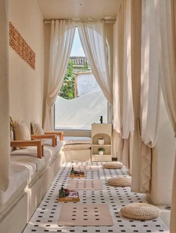 环境和装修风格充满了浓郁的度假风,很能让人松弛下来,是个放松的好地方!据老板介绍泰式按摩是他们的特色体验项目,很赞!因为没有团他们家套餐里面有赠送按摩,加上这次时间比较紧没来得及体验,下次要再来体验一把!