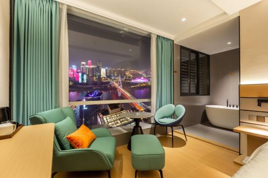 看了很多家酒店,最终选择了这家,没有失望,太温馨了,房间干净卫生没易味,中央空调有暖风,白天的风景和晚上的夜景太棒👍迷人,坐在窗户边品茶观景太美了,落地大窗户给人一种心旷神怡,心情好爽,跟照片上的一样夜景美丽,酒店位于解放碑洪崖洞索道还有周边的景点中心,去哪都很方便,交通便利,地铁站就在二百米左右,服务很好,前台随时给予帮助,很有耐心,主动给你推荐公约,让你不会被踩坑,人很好👍直得推荐