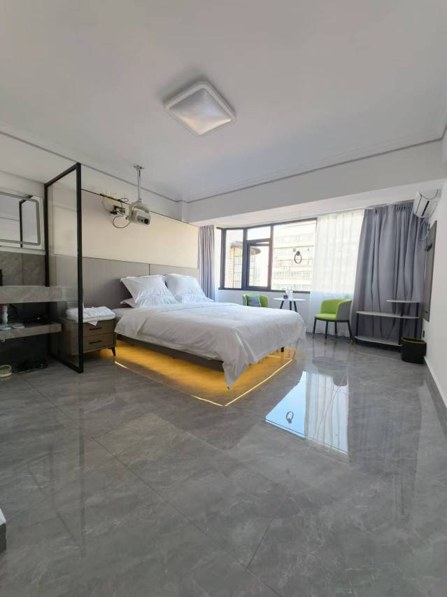 正正市中心,下楼就是商业街和小吃街,去哪步行都方便。地下车库免费停车省了一大笔停车费,有准备免费水果和小零食、矿泉水,房间采光好,电视能联网投屏特别棒!