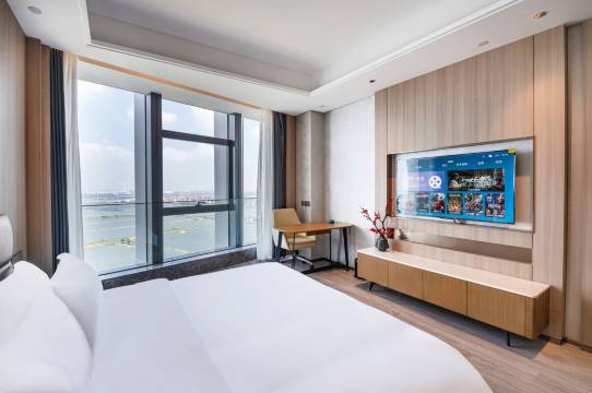 酒店三面环海,环境安静,视野开阔。定的海景房楼层很高,窗外就是海天一色,早上起来看日出特别美。虽然是新开的,但一点装修味道都没有,空调效果也很好。如果非要说缺点,就是周边还在开发,外卖不方便,但酒店自己的餐厅点餐味道不错,价格也实惠,完全可以解决晚餐问题。非常满意的一次入住!