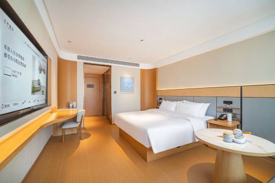 入住酒店地理位置好,去哪都方便,房间舒适干净卫生,前台服务人员特别好,客房服务人员主动问好,大堂还有免费的咖啡喝,入住全季酒店服务好设施好会继续来住的,停车场大。