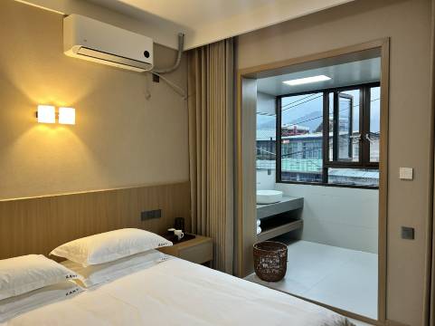 新开的民宿,房间干净、卫生。老板很热情、好客,工作人员服务态度很好。一楼有餐厅,就餐方便,厨师炒的菜味道也很赞。离公园、城中心也比较近,步行几分钟就到了。总体来说比较好!值得推荐!
