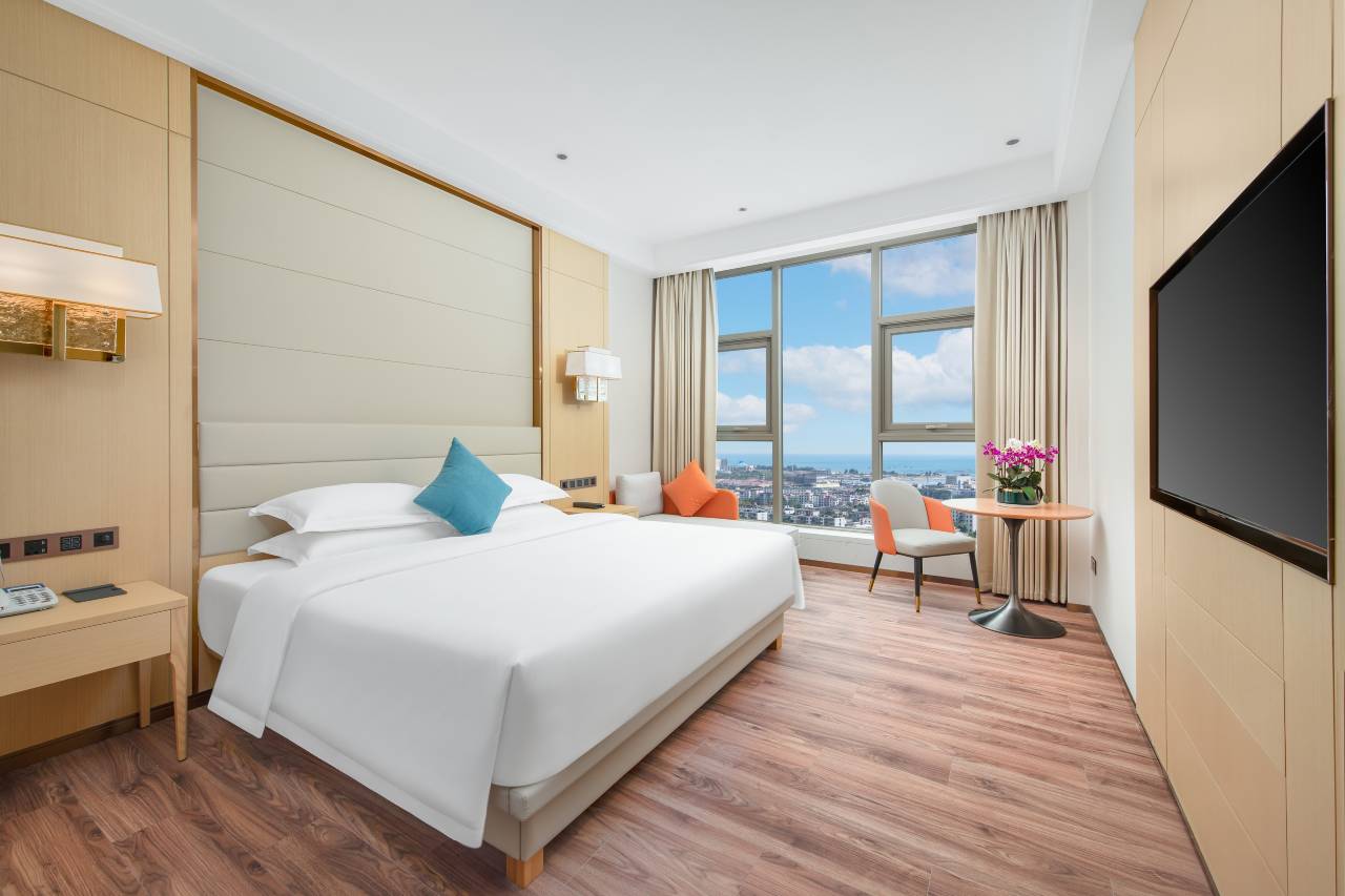 房间很大,躺床上可以看到大海,卫生间也很干净,前台服务很好,很热情,早餐很丰富,出差入住这酒店一觉到天亮,下次出差还住,太舒服了