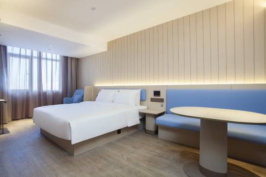 春节回老家过年,选择入住他家,一家三口订的亲子房一张双人床一张单人床,酒店新装修的,房间干净整洁,全电子控制,很便捷。特别赞楼下的水吧,咖啡茶水加上糖果小点心,酒店对面就是新开的奥莱,位置好,以后回家就选他家了。