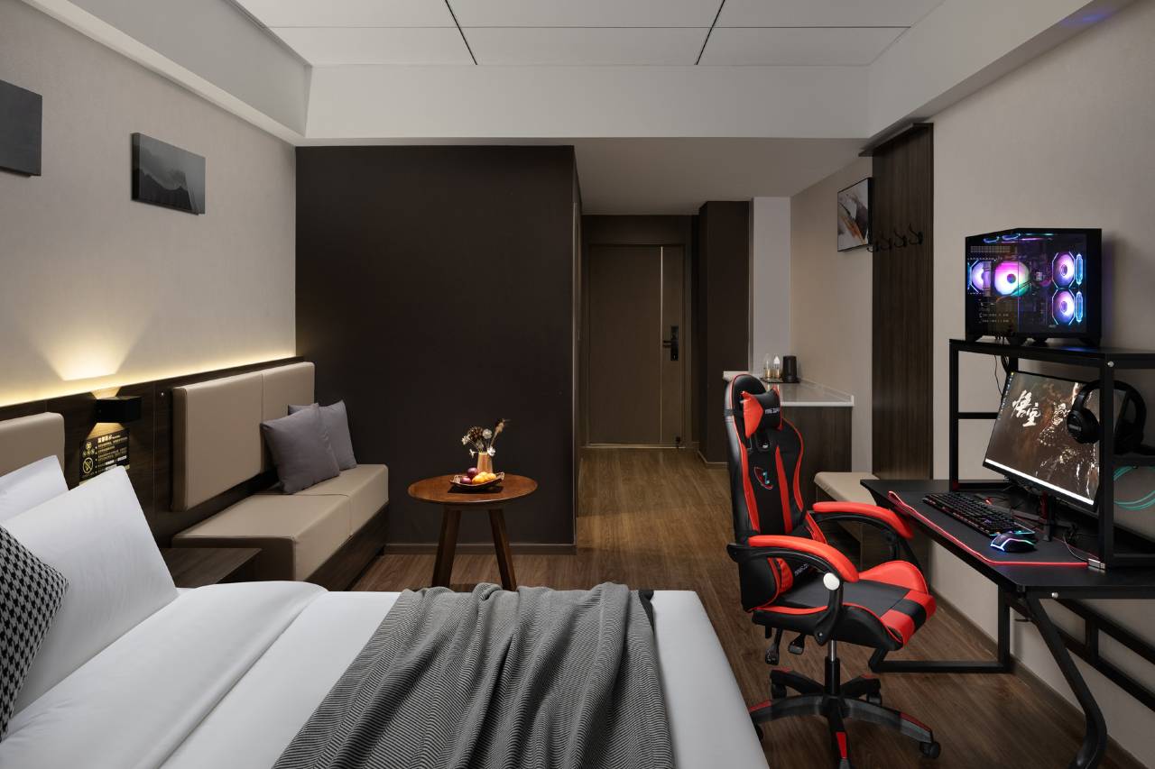 i 装修简约大气,电竞设备齐全,玩游戏超丝滑,床很舒服,整体超预期。电脑运行流畅,不发热不闪退,网速超快,环境干净,服务好,值得再来