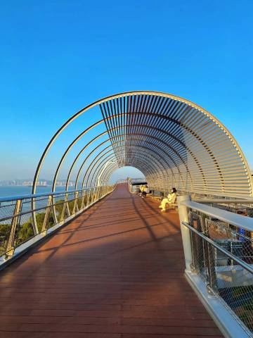 了,出去走五分钟就是公交车站.海边就在对面,只要一元钱就能