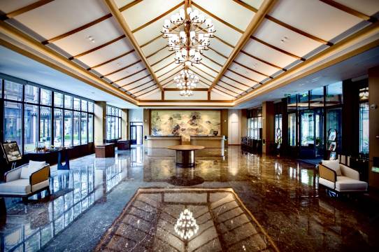 一到酒店就有服务人员主动上前帮忙拿行李箱, 帮忙送到前台。前台服务人员也很亲切,效率很高,还加了微信帮忙推荐周边景点及美食。酒店内环境很美,还有大锦鲤,房间很大,物品很齐全, 设施设备齐全。 这里还有泳池, 水温很合适,水质不错。健身房器械也很多。体验感超值,下次还来住这里。