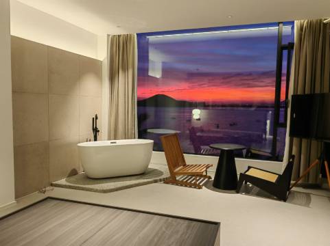 酒店设施齐全,卫生干净整洁,房间很宽敞,装修风格新颖独特,面朝大海,环境优美,可以带孩子来体验赶海的乐趣,老板非常热情,服务周到,入住体验不错。