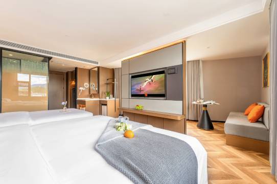选对酒店太重要了!这家位置超赞,紧邻景区入口,游玩超方便。房间安静整洁,床品亲肤,隔音效果好,完全不被打扰。设施新且全,智能设备用着很顺手。工作人员热情专业,给了很多实用游玩建议,下次来还住这儿!超出预期的酒店!大堂温馨大气,办理入住高效快捷。房间空间宽敞,布局合理,储物空间充足。淋浴水压足,热水秒出,空调温度稳定。周边餐饮选择多,步行可达。服务周到不敷衍,细节处尽显用心,绝对值得二刷!