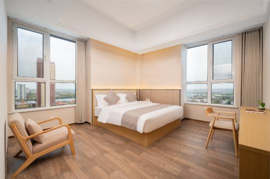 房子进去首先给人的感觉很大,真大,也很舒适,很安静,卫生一级棒,空调制热太厉害了,卫生也很好,很干净,然后桌子上有酒店给送的小礼物,很贴心,只要你有需要,酒店直接就给你办理,服务太多很好,很贴心!大力推荐!大力推荐!