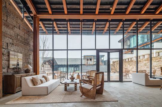 店是独珠江村农文旅融合发展、城乡融合发展和农村“三变”改革示范项目,其地处独珠半岛江湾处,村落布局有序,肌理层次丰富,江村风光要素齐全,是整个独珠江村景色优美的区域之一。本店建筑风格采用巴渝地区传统民居构造形式,对现状保持完好的部分原址建筑进行加固恢复处理,梳理梯田和林地,植入小微湿地修复生态环境,保持整体乡村现状风貌,是集民宿、餐饮、市集、艺术沙龙为一体的农文旅融合艺术综合体。,包含商务会议中心,江村艺术集;共计多间房,可同时容纳至少多人就餐,多人住宿;江村艺术集以江村民俗文化为核心打造多元化的常态文创活动、地方特色餐饮,可研学团建,可三两好友打卡体验。本店以自然生态为本底,原乡田园为基调,诗意江村为特色,产业运营为关键,国有平台公司经营,旨在打造高品质特色民宿,助力忠县文旅高质量发展,为独珠江村乡村振兴注入“新动能”。
