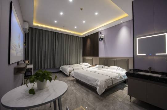 一进大厅很干净,前台小姐姐接待很热情,房间里也是很干净,这个价钱真是超级值,还有星空顶很漂亮,投影也特别清楚,楼下还有台球厅,晚上和老公在楼下打了一会台球,台球厅很大,楼上楼下都很干净,特别值得推荐,超值的体验