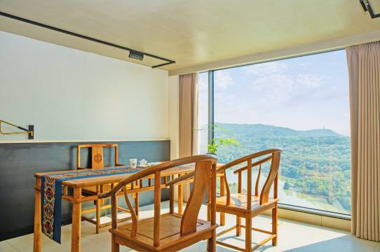 房间窗外景色很好,空间宽敞,光线明亮,住起来挺舒服。位置交通便利,点外卖也方便,旁边就是青秀山,去会展中心打车10分钟。