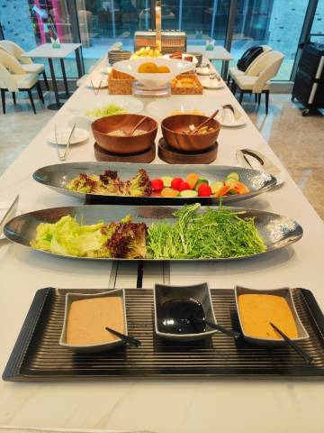 酒店很不错,不大但很有序精致,特别干净,服务人员也都很有礼貌,专业,周边就餐非常方便,因为酒店坐落于商业区永昌汇,酒店还特意为我们升级了行政湖景房,去周边景点也不算远,打车也很方便,是一个性价比不错的酒店