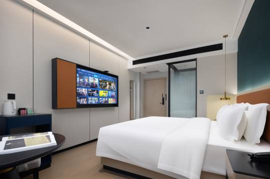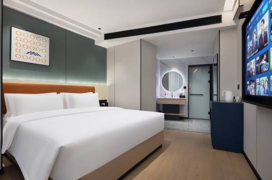 非常满意👍这样的房间算中高端品质了,房间很干净。床单很顺滑,网速很快。装修风格时尚简约,环境舒适。有大型连锁酒店的服务理念模式。非常好。店内免费咖啡非常好喝👍。