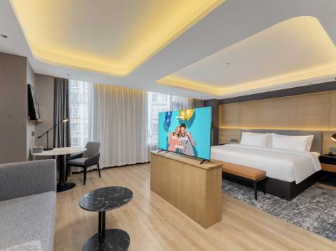 房间干净整洁,前台服务很好,免费延迟了退房时间,周边交通便利,晚上很热闹,逛街,吃饭都很方便,不错的体验!