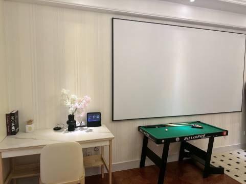 房间里的投影屏幕好大哦。晚上看电影绝赞啊!老板超贴心还把自己的会员给我们用。尽管就在地铁站附近,晚上也很安静感受不到喧嚣。新装修的房间,东西都很新,好评好评!