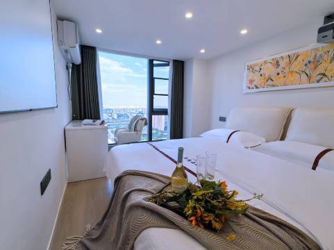 房间宽敞整洁,落地窗视野极佳,床品舒适度高