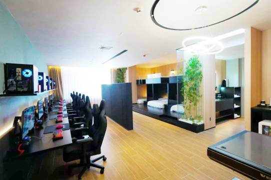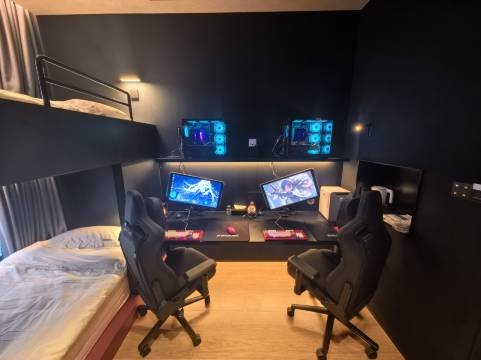 房间的布局简洁而优雅,色调温馨舒适。电竞设备的配置堪称一流,高性能的电脑和流畅的网络,让我在游戏中畅快淋漓,完全没有卡顿现象。无论是与朋友组队开黑,还是独自挑战高难度关卡,这里都能满足电竞爱好者的各种需求。值得一提的是,房间的隔音效果非常好,即使在激烈的游戏过程中,也不会受到外界噪音的干扰。
