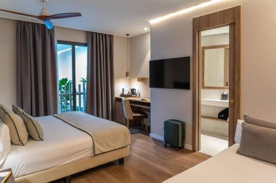 非常精致的酒店,入住体验很好。前台办理入住的美女和帅哥开朗、阳光、友好,即养眼又暖心。酒店位于马拉加老城中心位置,距离毕加索博物馆几百米步行距离,马拉加其它主要景点也都步行可达。酒店周边遍布大小餐馆、酒吧、大小超市,非常方便。