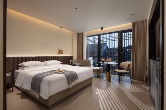 酒店房间干净整洁干湿分离 设施齐全 床很软很舒服 前台服务热情周到 还有免费停车 可以带宠物 办理入住和退房都很快 酒店位置便利 出行方便 酒店就在老街上,晚上风景很不错可以拍好看的照片 整体体验超预期很不错的一家酒店 性价比也很高,过来天台玩首选第一