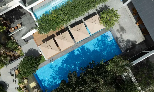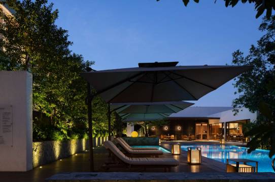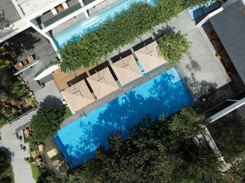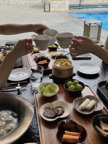 整体环境很好,装修设计审美在线,有竹林咖啡厅,餐厅,泳池等,很适合周末staycation。
