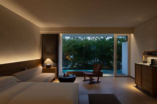 房间景色特别美,被竹林环绕。喜欢这种#精品民宿#房间数量不多,很安静私密性也好。入住茶礼是腌渍青梅,跟整个环境都很搭,早餐也很棒。非常满意管家的服务,反应速度满分。房间里去设施也很齐全,还贴心地准备了一次性的洗脸巾和擦屁屁湿纸巾,女生友好。整个酒店的设计是我喜欢的禅意风格。唯一可以改进的是大落地窗旁边的竹子植物可以种得再茂密一点,现在隔壁房间还有外面走道的路人还是可以看到房间里面,所以我们不能把窗帘完全拉开欣赏180度竹景。